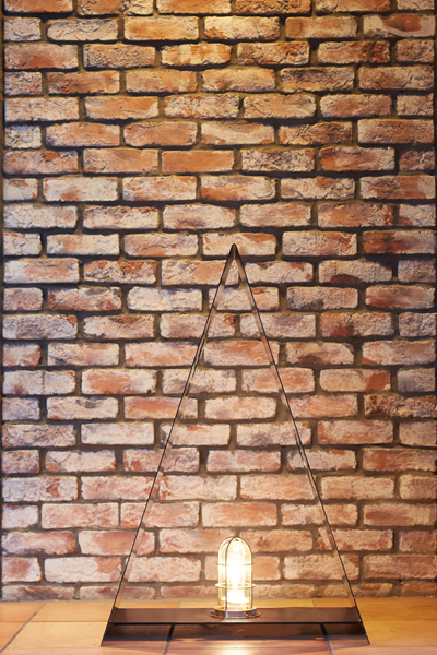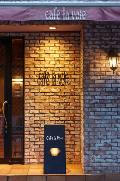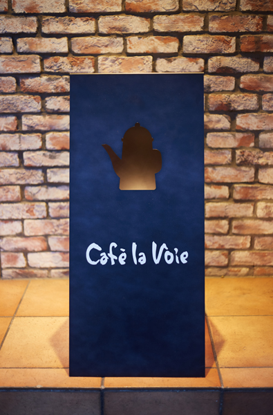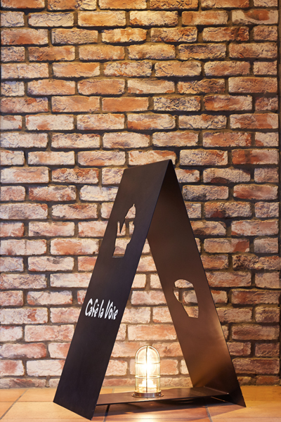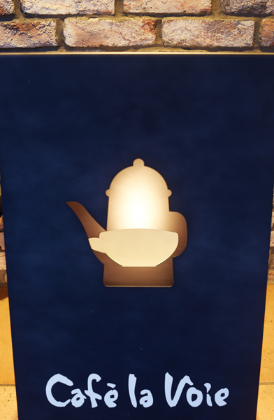 下部にはマリンライトを添え付け、切り抜いたコーヒーカップとポットから照明の灯りが溢れ出します。