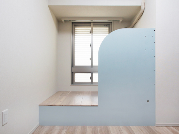 費用を抑えるために、家具工事ではなく大工工事とし、素材はシナ合板をメインとして組み立て式としています。