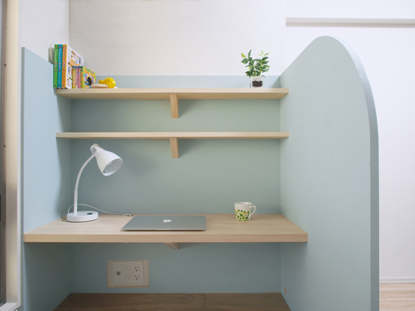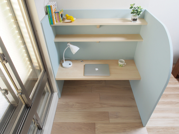 マンションの寝室のデッドスペースに、わずか1畳ですが、パソコン作業や、物書き、疲れたらそのままゴロゴロと寝転びながら好きな本を読めるスペースをつくりました。
