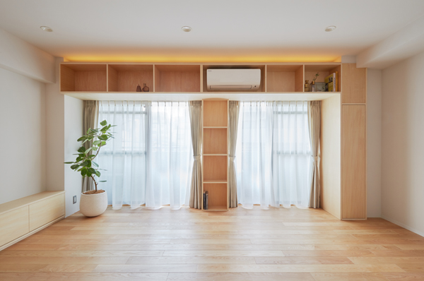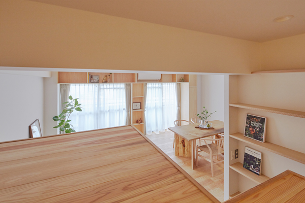 下のリビングダイニングとつながり、窓から見える外の景色が連続することで空間を広く感じることができます。